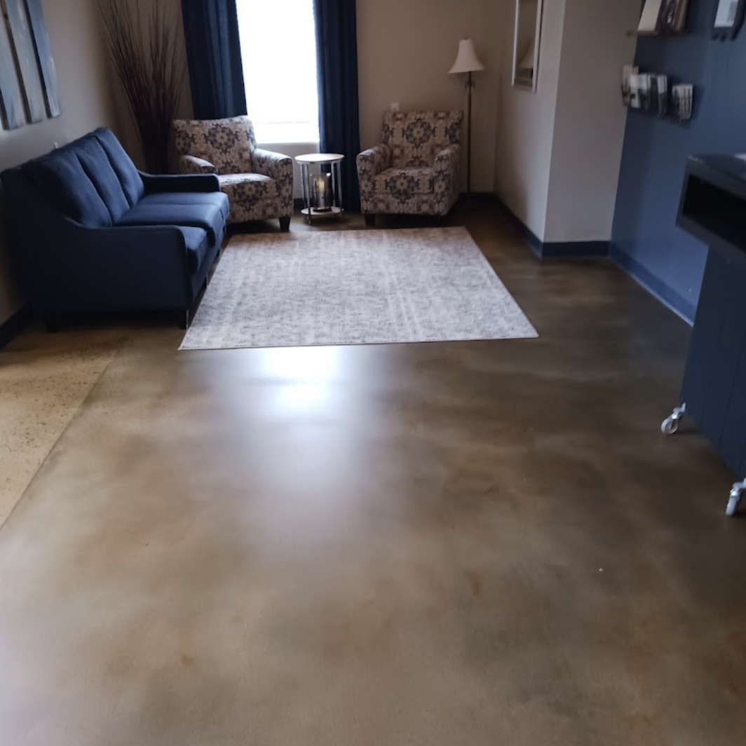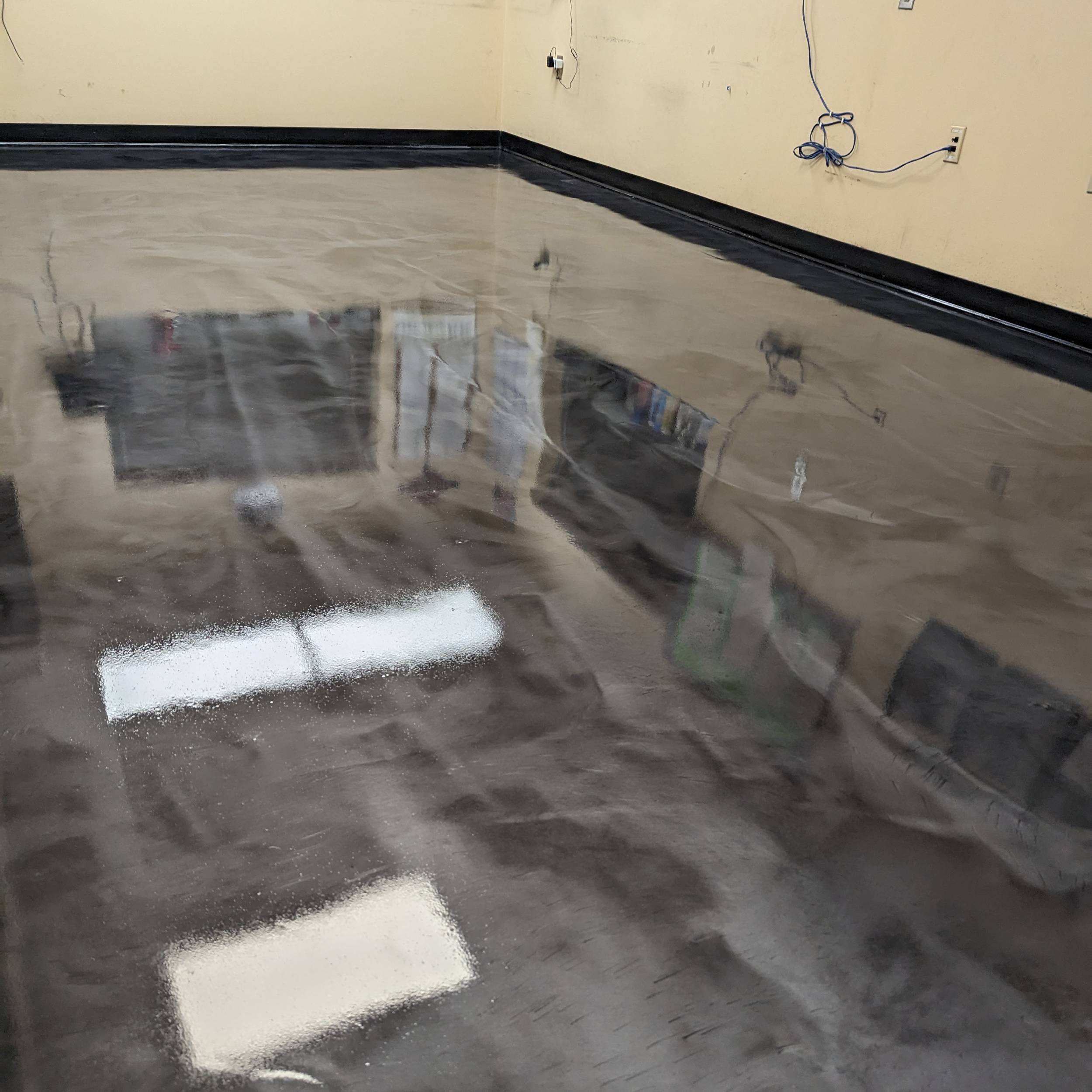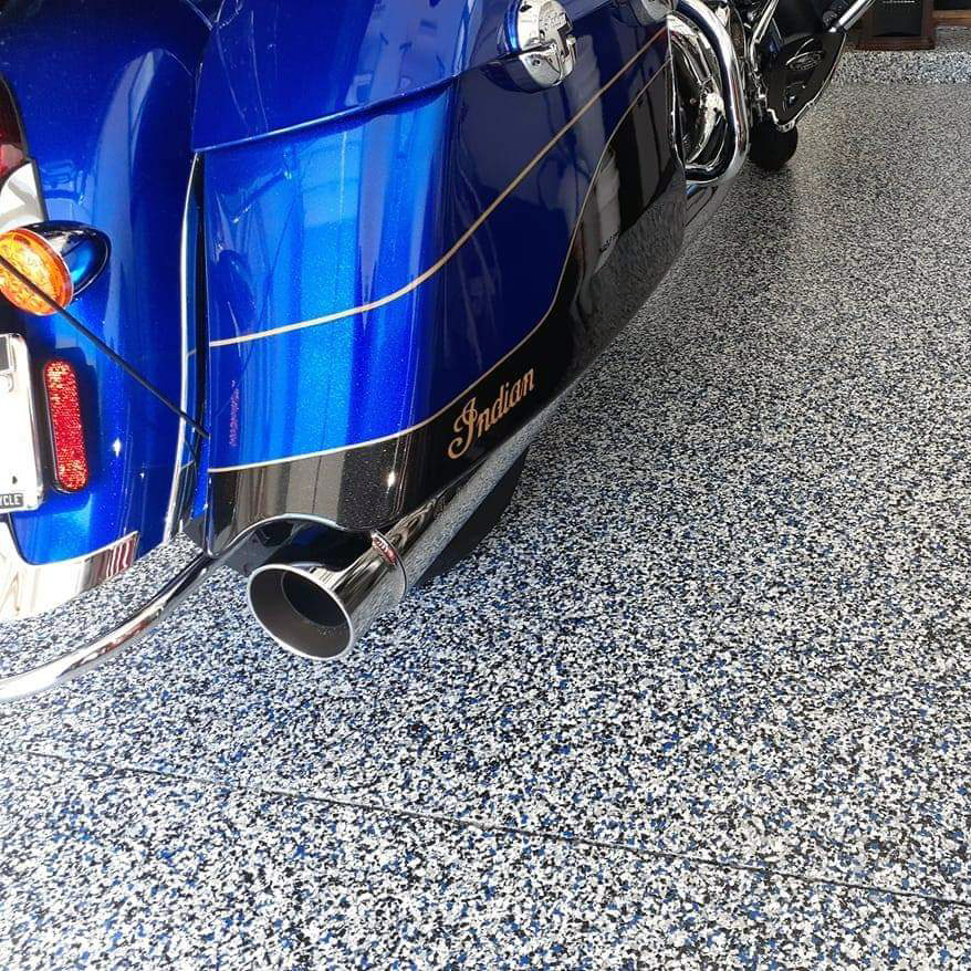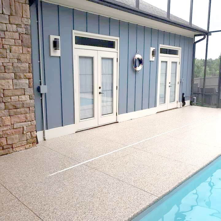 This extremely durable product consists of multicolored vinyl flake that are topcoated with a polyaspartic topcoat.