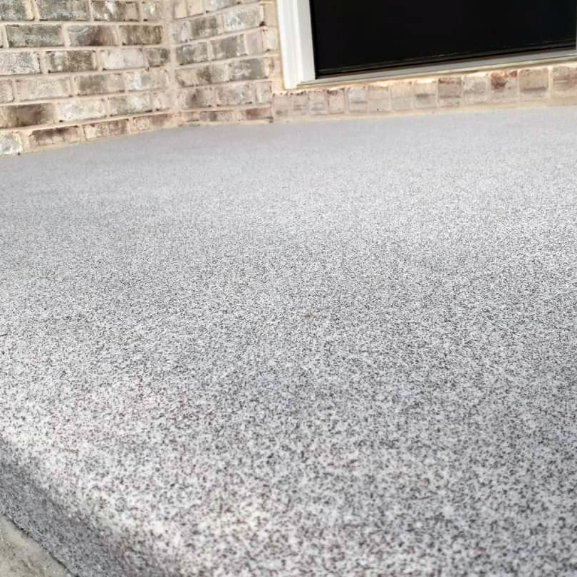 This extremely durable product consists of very fine multicolored sand like particles that are topcoated in a resistant clear coat.